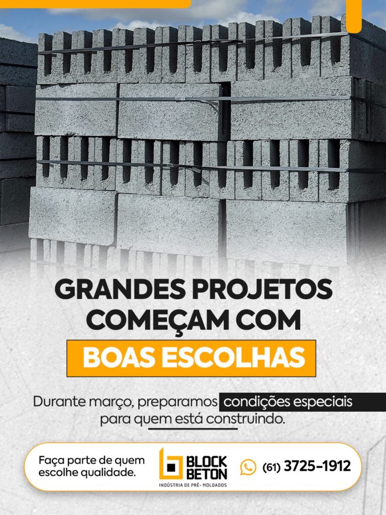 Grandes projetos não começam apenas no canteiro de obras. Eles começam nas escolhas. Escolher materiais com procedência, padrão e compromisso com a entrega faz toda a diferença no resultado final da obra. Durante março, a Block Beton preparou condições especiais para quem está construindo. Entre em contato com a nossa equipe e saiba mais. #construcaocivil#engenhariacivil#obras#materiaisdeconstrucao#blockbeton